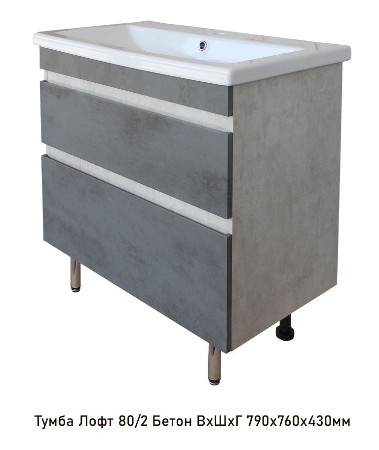 Тумба 800/2 Лофт (бетон) +умывальник Como 80/Fest 80